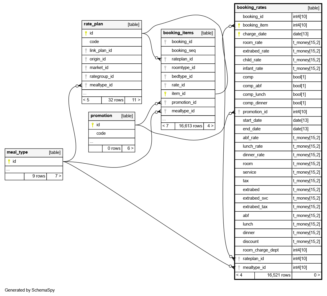 | pk_booking_rates | Primary key | Asc/Asc | booking_item + charge_date |