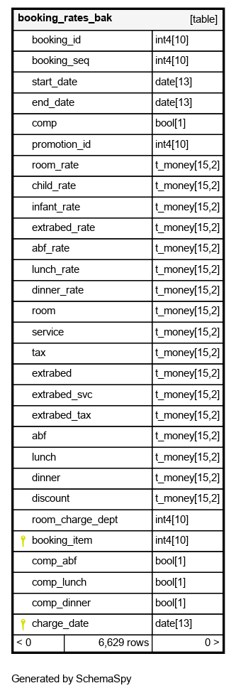 | booking_rates_bak_pk | Primary key | Asc/Asc | charge_date + booking_item |