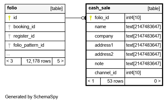 | pk_cash_sale | Primary key | Asc | folio_id |