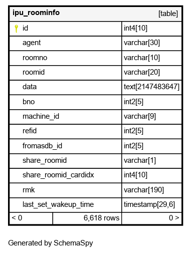 | ipu_roominfo_pk | Primary key | Asc | id |