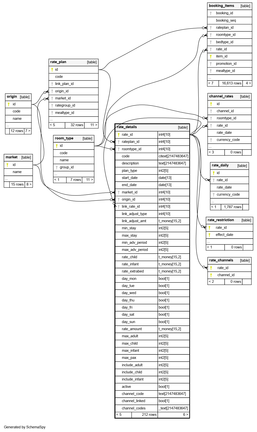 | rate_details_unq | Must be unique | Asc/Asc | rateplan_id + roomtype_id |