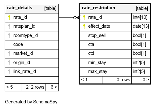 | pk_rate_restriction | Primary key | Asc/Asc | rate_id + effect_date |