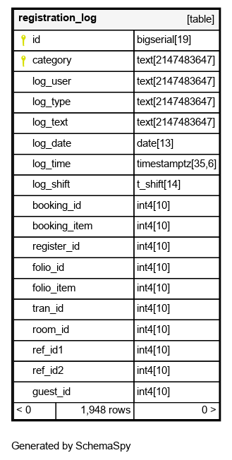 | registration_log_pkey | Primary key | Asc/Asc | category + id |