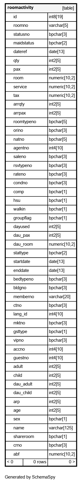 | roomno | varchar | 5 | null |