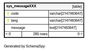 | pk_sys_message | Primary key | Asc/Asc | code + lang |