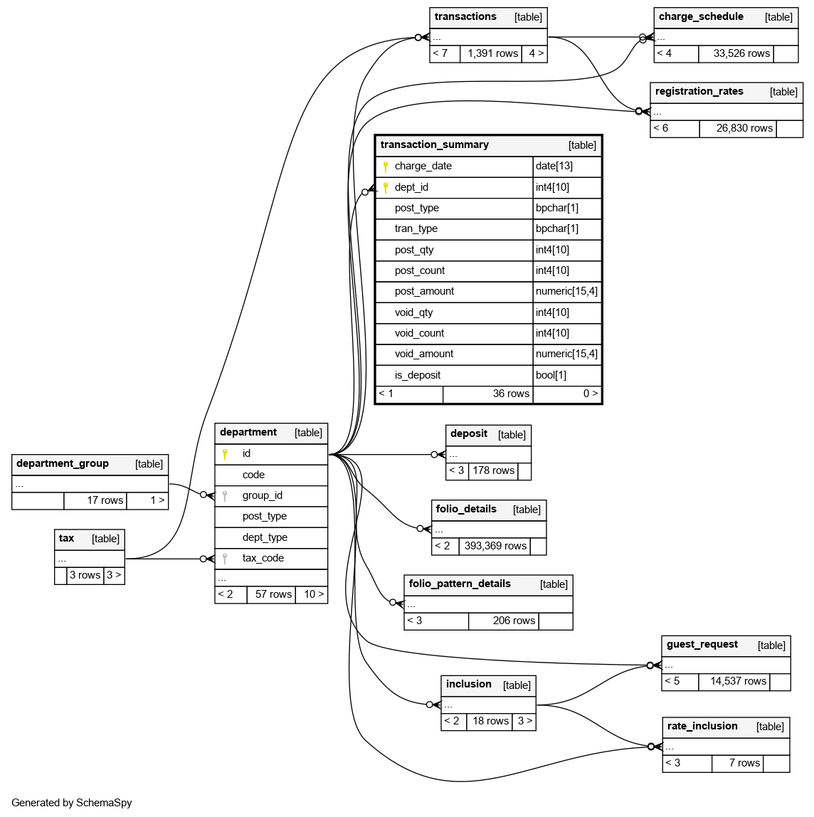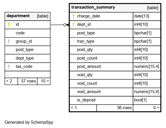 | pk_transaction_summary | Primary key | Asc/Asc | charge_date + dept_id |